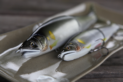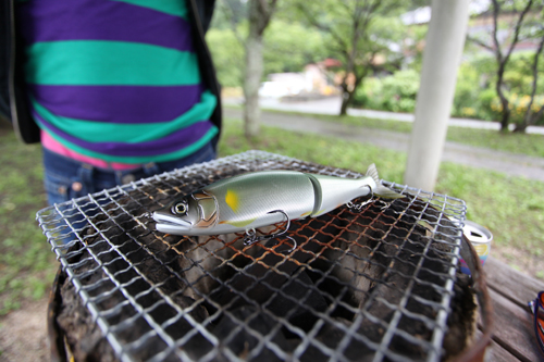 「夏は七輪で鮎でも焼いて食うべ!」という、こんなカットを撮るにはどうしたらいいんだろう…。今回も結構な苦労がありそうな予感(笑)。如何せん、前回はフィッシュボーン様の登場で燃え尽きた自分。「今回こそ自分の力量が問われるぞ!」と言い聞かせ撮影に挑んだわけ。限られたレンズの中で、七輪の上でリアルに魚を表現するにはビッグベイトが相応しいと絞っていた。ビッグなルアーと言えば、ガンクラフトさんが頭に浮かび上がり、すかさず手配をかけさせてもらった。