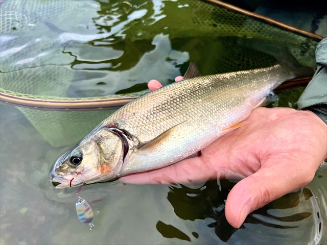 そして2025年秋。 暑さの影響か?秋の猪苗代湖は渋そうだった。そこで、地元フィッシャー達も試していないと思われる打開策を密かに考えていた。それは自分が得意とするシーバスフィッシングの応用で、水深30mラインをメインにシンキングペンシルをスローに通す作戦だった。食い気のない魚に優しくアピールと思ったのだが、残念ながら反応したのは元気なウグイだけだった。定番的なジグルアーではルアーウェイトに対してラインに浮力があるため、浮かせたり沈めたりジグを縦に動かし魚を誘うのだが、今回挑んだ12~15gのABS製ルアーでは浮力が強いため理想的な誘いが出来なかったようだ。とは言え、魚のサイズや飛距離を踏まえるとタックルバランスを変えるわけにもいかない。ベイトとなるワカサギがいないのか?レンジが甘いのか?自分のフロンティア精神に不安があるのか?全く反応がなかったので来年の課題として深く受け止めた。