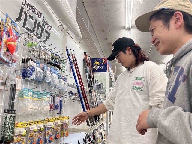 ここ万代とはリユースでアミューズメントな巨大エンターテイメントストア。オジマ君がオーナーを務める個人店の「パンゲア」が、ここ万代多賀城店のフィッシング部門と合併したのは丁度3年前のこと。現在も現場の軸となるが、そんな万代フィッシング部門に新人としてTatsuya君が入社。当時は上司と部下の関係だったが、今でこそ退社したTatsuya君は多忙なバンド人生を営んでいる。