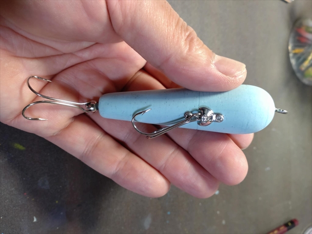 中:本当は根掛かりのリスクが少ないトップウォータープラグより、潜るルアーの方が相応しいと思ったんですけど、そもそも釣りをしない彼らが水中のバランスを考えてルアーを作るのって難しいですよね。でもトップだったら、浮いているだけでも釣れる可能性があるじゃないですか?とりあえずは彼らの第一歩ですから。僕がシンプルなペンシルベイトを造形して、それを彼らがスキャンして3Dプリンターで増産し、それを僕がペイントする流れで進めています。